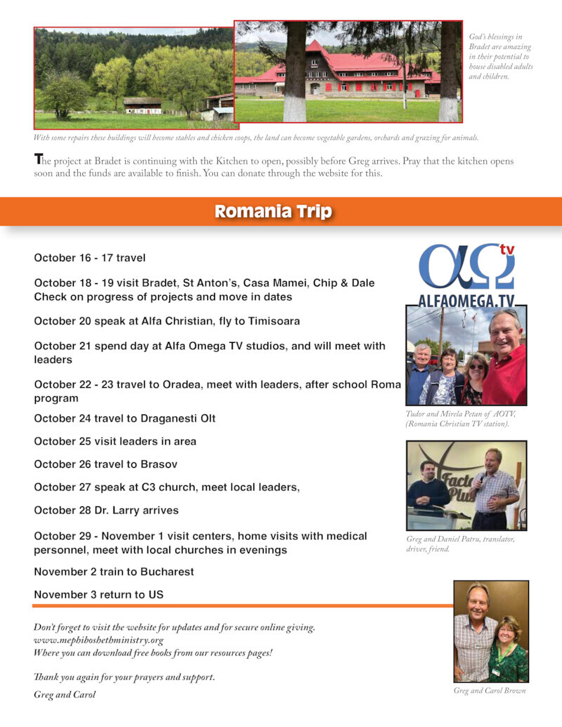 Mary Jane became ill while traveling to Ghana in 2020, to celebrate the 16-th year anniversary of the school for disabled children Mephibosheth started. Greg and Carol Brown were her choice to take over the ministry.